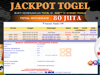 TOGEL88 JACKPOT TOGEL DI SYDNEY POOLS Rp 80.000.000,- LUNAS MEMBER TOGEL88 MENERIMA PELUNASAN KEMENANGAN JACKPOT TOGEL DI SYDNEY POOLS Rp 80.000.000,- LUNAS “TOGEL88 Situs Togel […]