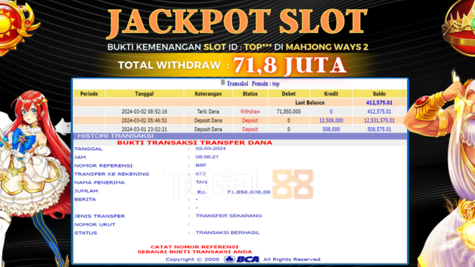 TOGEL88 JACKPOT SLOT DI MAHJONG WAYS 2 Rp 71.850.000,- LUNAS