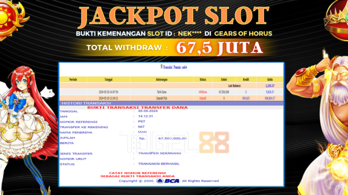 TOGEL88 JACKPOT SLOT DI GEARS OF HORUS Rp 67.500.000,- LUNAS