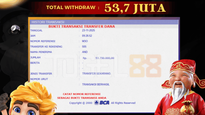 TOGEL88 mengucapkan selamat kepada user id : AND*** yang telah berhasil mendapatkan jackpot pada permainan SLOT DI KOI GATE. Kemenangan sebesar Rp 53.700.000,-. telah dibayarkan LUNAS oleh pihak TOGEL88 kepada pemilik user id setelah yang bersangkutan mengisi formulir withdraw. Proses pencairan dana berlangsung sangat cepat hanya dalam waktu 5-10 menit sudah berada dalam rekening pemilik user id. Bukti transfer yang dapat anda lihat adalah bukti SAH / VALID yang langsung di dapatkan melalui bukti transaksi dari Bank yang digunakan untuk pengiriman dana pada rekening pemilik user id. Terima kasih kami sampaikan kepada para pengguna setia TOGEL88 yang telah menggunakan situs kami, sebagai Bandar Terpercaya yang pastinya membayar semua kemenangan member hingga lunas. Apakah TOGEL88 PENIPU ? Reputasi “TOGEL88 TERPERCAYA” sudah sangat melekat. puluhan hingga ratusan ribu pengguna setia TOGEL88 tetap menggunakan situs terbesar dan terbaik di Indonesia ini. Hapus rasa was-was dan khawatir anda, kemenangan anda berapapun PASTI dibayarkan hingga lunas.