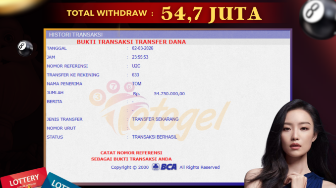 TOGEL88 mengucapkan selamat kepada user id : BAR*** yang telah berhasil mendapatkan jackpot pada permainan SLOT DI SUGAR RUSH 1000. Kemenangan sebesar Rp 80.200.000,-. telah dibayarkan LUNAS oleh pihak TOGEL88 kepada pemilik user id setelah yang bersangkutan mengisi formulir withdraw. Proses pencairan dana berlangsung sangat cepat hanya dalam waktu 5-10 menit sudah berada dalam rekening pemilik user id. Bukti transfer yang dapat anda lihat adalah bukti SAH / VALID yang langsung di dapatkan melalui bukti transaksi dari Bank yang digunakan untuk pengiriman dana pada rekening pemilik user id. Terima kasih kami sampaikan kepada para pengguna setia TOGEL88 yang telah menggunakan situs kami, sebagai Bandar Terpercaya yang pastinya membayar semua kemenangan member hingga lunas. Apakah TOGEL88 PENIPU ? Reputasi “TOGEL88 TERPERCAYA” sudah sangat melekat. puluhan hingga ratusan ribu pengguna setia TOGEL88 tetap menggunakan situs terbesar dan terbaik di Indonesia ini. Hapus rasa was-was dan khawatir anda, kemenangan anda berapapun PASTI dibayarkan hingga lunas.