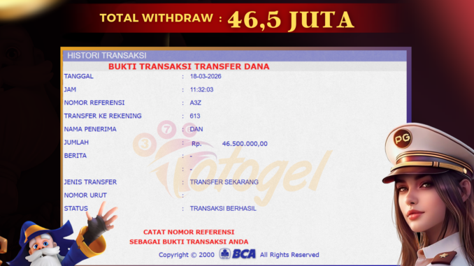 TOGEL88 mengucapkan selamat kepada user id : KAT*** yang telah berhasil mendapatkan jackpot pada permainan SLOT DI AZTEC GEMS. Kemenangan sebesar Rp 75.700.000,-. telah dibayarkan LUNAS oleh pihak TOGEL88 kepada pemilik user id setelah yang bersangkutan mengisi formulir withdraw. Proses pencairan dana berlangsung sangat cepat hanya dalam waktu 5-10 menit sudah berada dalam rekening pemilik user id. Bukti transfer yang dapat anda lihat adalah bukti SAH / VALID yang langsung di dapatkan melalui bukti transaksi dari Bank yang digunakan untuk pengiriman dana pada rekening pemilik user id. Terima kasih kami sampaikan kepada para pengguna setia TOGEL88 yang telah menggunakan situs kami, sebagai Bandar Terpercaya yang pastinya membayar semua kemenangan member hingga lunas. Apakah TOGEL88 PENIPU ? Reputasi “TOGEL88 TERPERCAYA” sudah sangat melekat. puluhan hingga ratusan ribu pengguna setia TOGEL88 tetap menggunakan situs terbesar dan terbaik di Indonesia ini. Hapus rasa was-was dan khawatir anda, kemenangan anda berapapun PASTI dibayarkan hingga lunas.