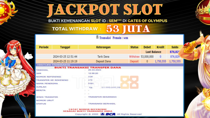 TOGEL88 JACKPOT SLOT DI GATES OF OLYMPUS Rp 53.000.000,- LUNAS